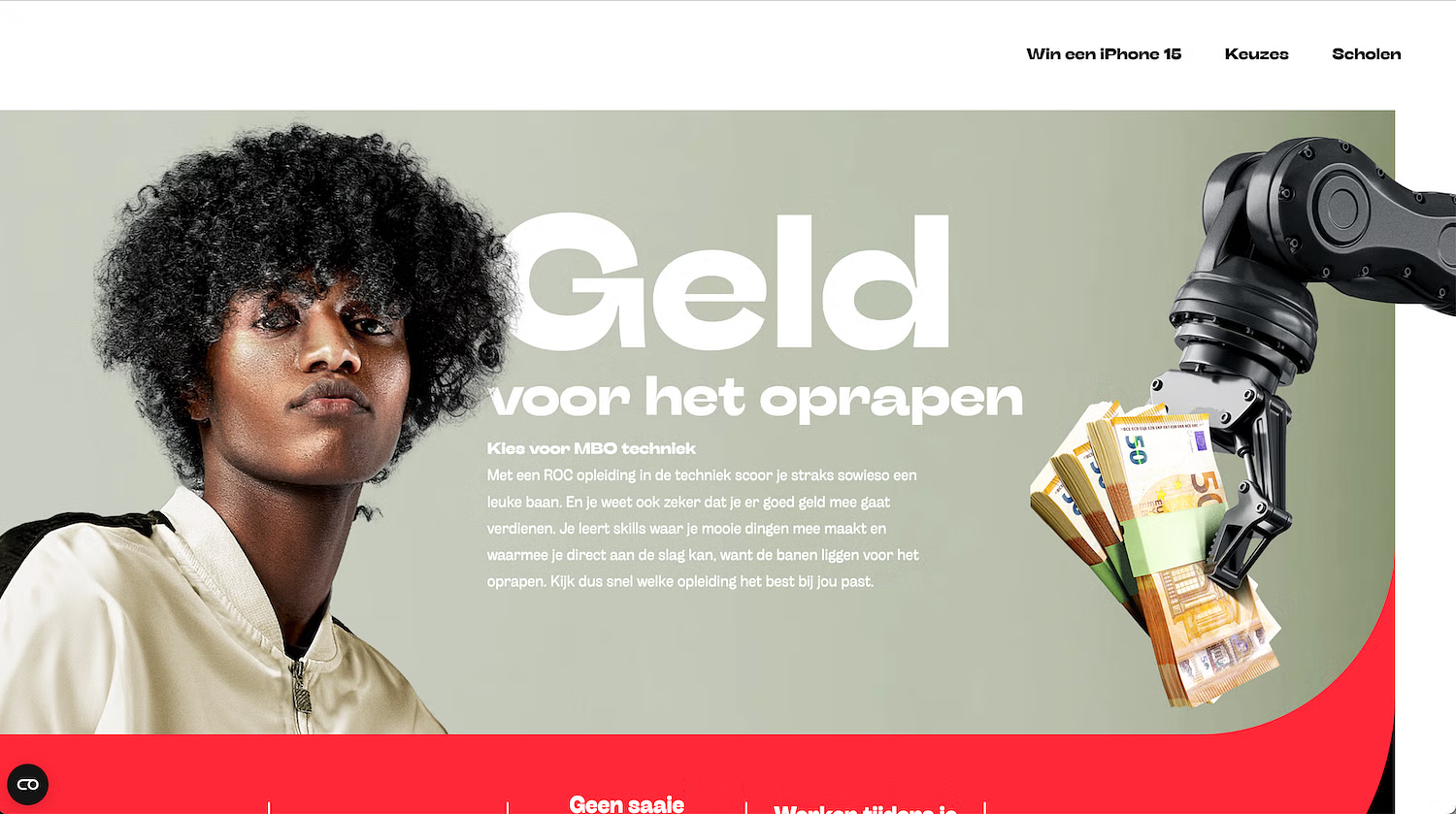 Doorlopend campagne website voor ROC Westpoort (via Woedend Creative Agency) in de onderwijssector voor een Gen Z publiek.